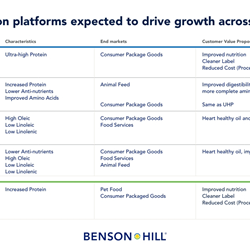 By leveraging deep insights on its proprietary soybean germplasm, Benson Hill is strategically positioned to drive seed innovation in broadacre opportunities for the aquaculture, pet food, swine and poultry markets – some 90 percent of the soy market.1 According to Elsner, the recent field evaluations support Benson Hill’s acceleration to an asset-light model focused on partnerships and licensing, including seed.