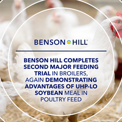™,” said Deanie Elsner, Chief Executive Officer of Benson Hill. “These study results not only reaffirm the value of our UHP-LO soybean meal for poultry producers seeking specific outcomes like feed efficiency, but they are also supported by more than two decades of soybean breeding and our technology core. We estimate that choosing specialty soy from Benson Hill can generate approximately $2.2 billion of value annually for the broiler industry.”